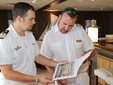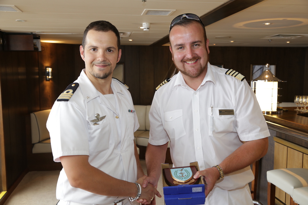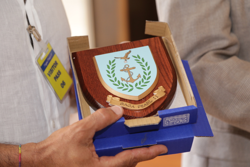 L’assessore Mauro Menozzi, accompagnato dai consiglieri comunali Giuseppe Faraldi e Federico Carion sono stati invitati sulla prestigiosa nave che da quest’anno ha iniziato a far tappa anche a Sanremo. Un'opportunità per la città grazie all'agenzia marittima Viale, che oggi era a bordo con il suo principale rappresentante Enrico Viale. Oltre a loro ha portato i saluti della città anche il comandante della capitaneria di porto di Sanremo, Vincenzo Fronte. Sia l'amministrazione comunale che i militari hanno consegnato due litografie storiche che riprendono due luoghi simbolo, Villa Zirio e la Capitaneria. In cambio il comandante della Saga Pearl, Nick Sunderland, ha consegnato a ciascuno un crest rappresentativo.