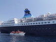 Piccola disavventura per due anziani ospiti della nave. Stanotte durante la navigazione un uomo ha accusato un malore e dopo esser state valutate le sue condizioni a bordo è stato deciso il ricovero su Sanremo. Si tratta di un 87enne che stamani è stato fatto sbarcare al Porto Vecchio matuziano, dove ad attenderlo c’era un equipaggio della Croce Rossa sanremese che ha provveduto al trasporto all’Ospedale Borea, dove rimarrà sotto osservazione. Una donna invece ha perso l'equilibrio sulla scala della banchina del porto, ruzzolando all'indietro. Anche nel suo caso la malcapitata è stata trasferita al nosocomio per accertamenti.