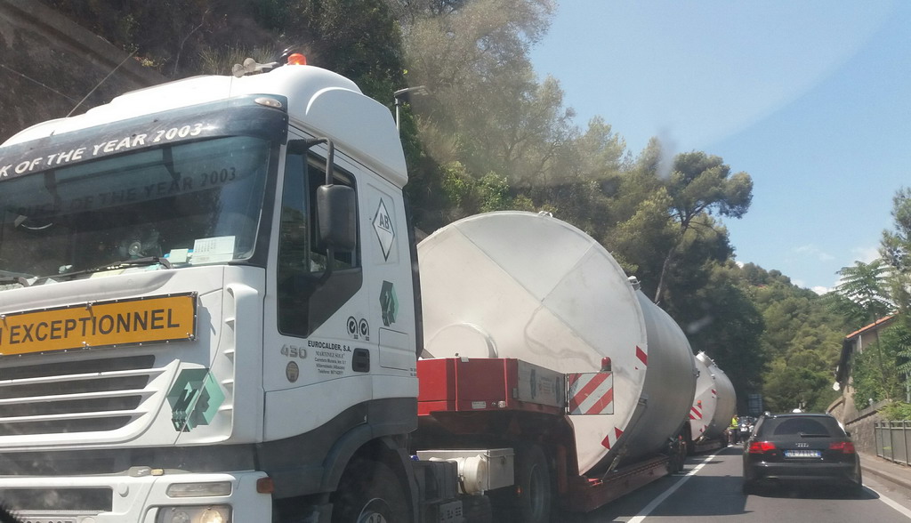 Ventimiglia: code all’ingresso della città per un trasporto eccezionale fermo su corso Francia