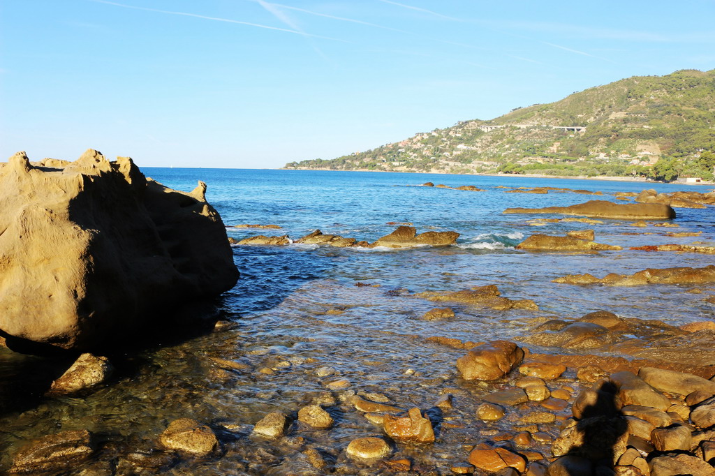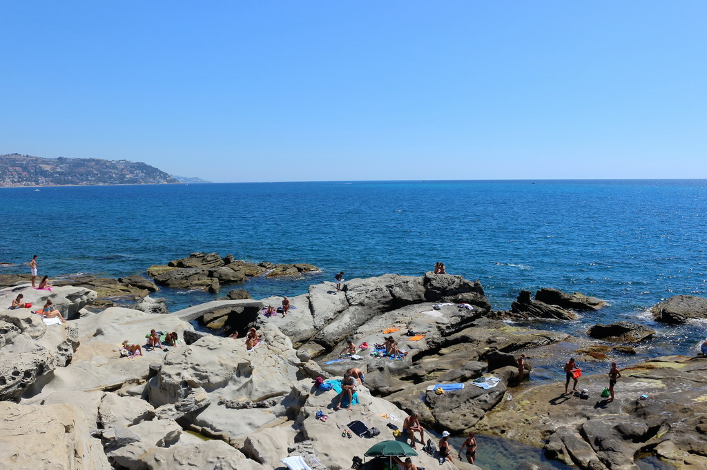 2. Per la medaglia d’argento si deve tornare a Bordighera dove si trova la spiaggia al capo Sant’Ampelio a ridosso dell’omonima e caratteristica chiesetta che porta il nome del patrono della città. Qui l’acqua è limpidissima con fondali affascinanti e le ampie e nude rocce sono giacigli naturali per rilassarsi al suono delle onde che si infrangono.