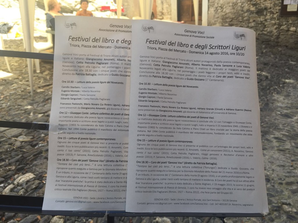 Dopo le presentazione pomeridiane “sotto il porticato” che hanno visto partecipare autori come Marino Magliani, Giorgio Bracco, Paola Decanis, Danilo Balestra e Daniela Bencardino, il Festival del Libro di Triora si avvia verso la fase finale che prevede un galà con gli scrittori condotto dalla filosofa Maria Giovanna Farina.