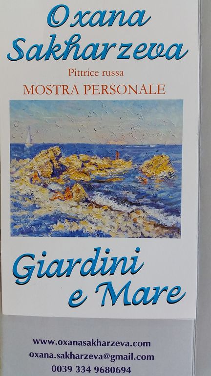 Diano Marina esporrà, presso Palazzo del Parco, dal 1° al 10 settembre, la mostra di quadri “Giardini e Mare”, dipinti dall'artistarussa Oxana Sakharzeva, con orario 10-12.30 e 16-23.