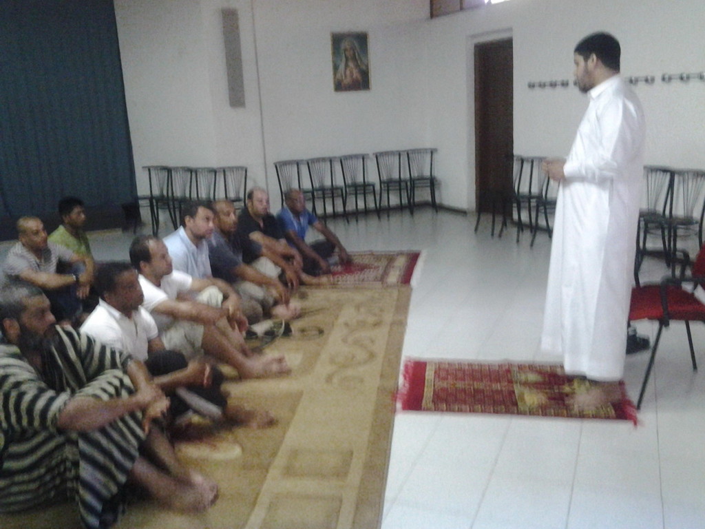 "La comunità musulmana di Ventimiglia ringrazia padre Francesco, il parroco della Chiesa di San Nicolò di Tolentino per aver reso disponibile lo spazio sotto la chiesa per la preghiera del venerdì, il giorno Santo per il tutte il musulmani. Inoltre i membri della Comunità lo ringraziano per la sua collaborazione con il residenti della città di confine per cercare di creare un relazione forte tra il residenti sia cristiani sia musulmani costruita attraverso un dialogo interreligioso.