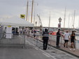 Scalo blindato al Porto Vecchio di Sanremo per l'innalzamento del livello di sicurezza per l'arrivo della nave da crociera Seabourn Soujourn. Le nuove disposizioni si sono tradotte in una delimitazione dell'area intorno al molo con l'apposizione di un recinto fatto di transenne, limitando le vie di ingresso.