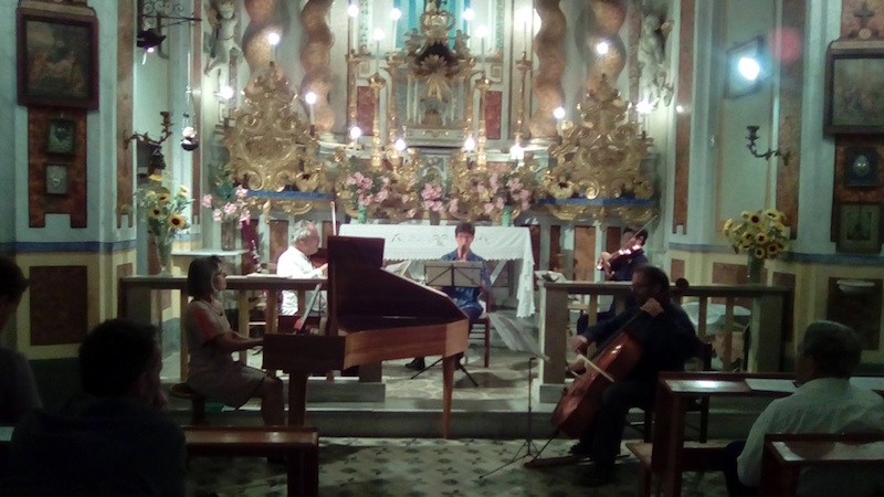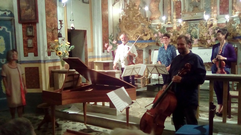 Grande successo sabato scorso al concerto al Santuario di Berzi a Bajardo con la fagottista Heike Staedter, la clavicembalista Gabriella Scholz, la violinista Irina Hornung, il violinista Michael Davis e il violoncellista e olivicoltore Tobias Reiss. tanti applausi per un'esibizione con un repertorio che spazia da Barsanti a Merci, passando per Escobar, Haydn e Scarlatti.