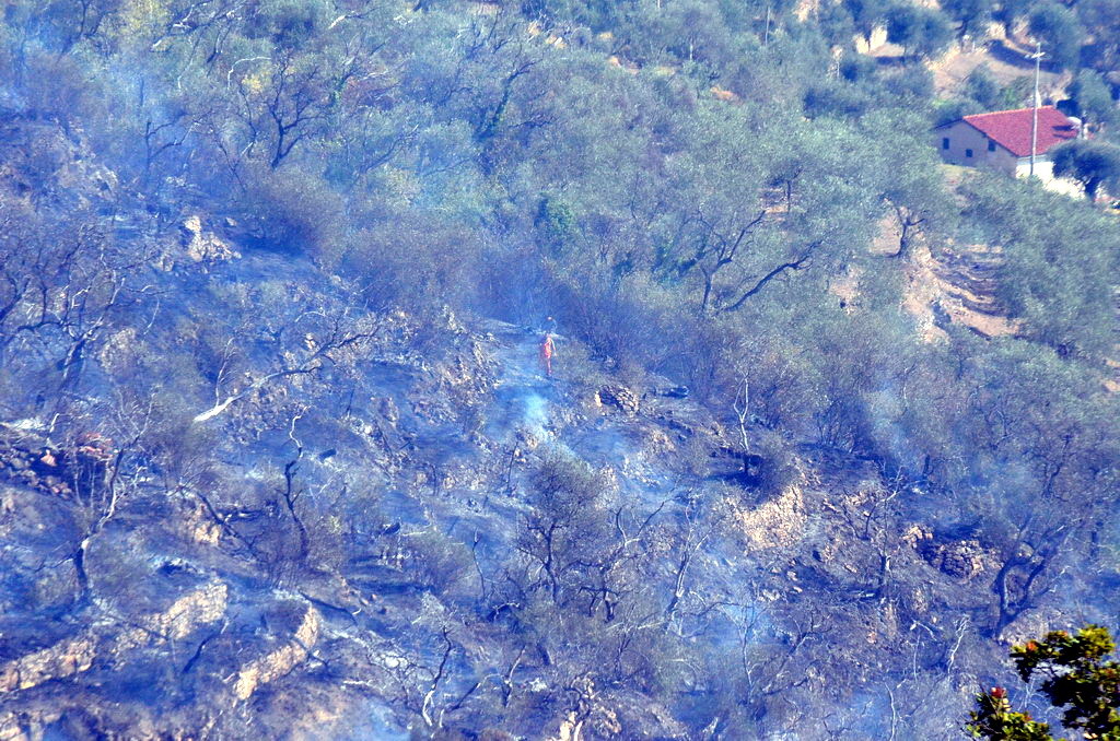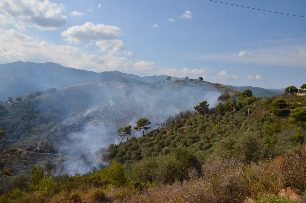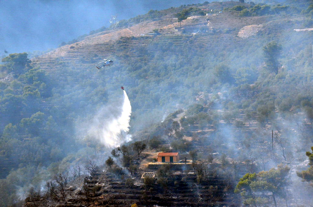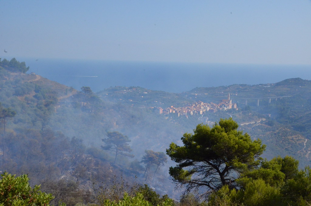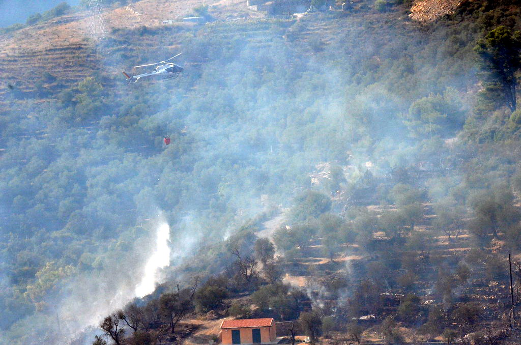 Civezza: vasto incendio vicino alle case in zona '5 burche', intervento degli elicotteri (FOTO e VIDEO)