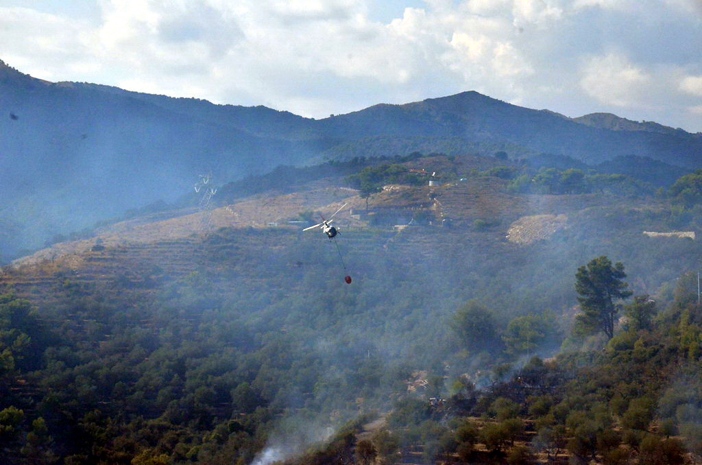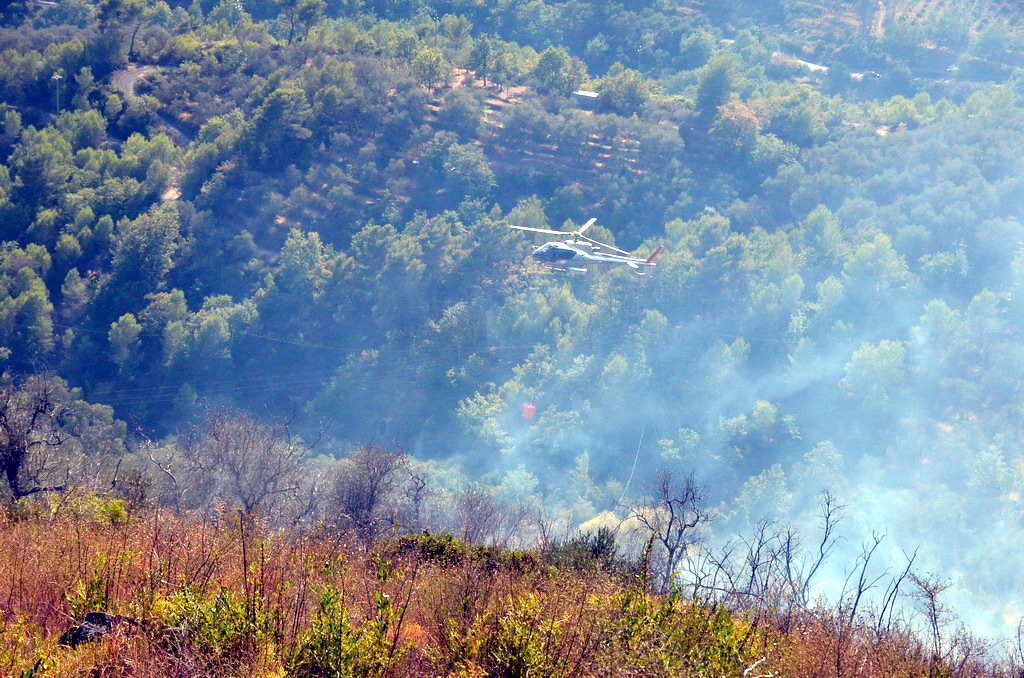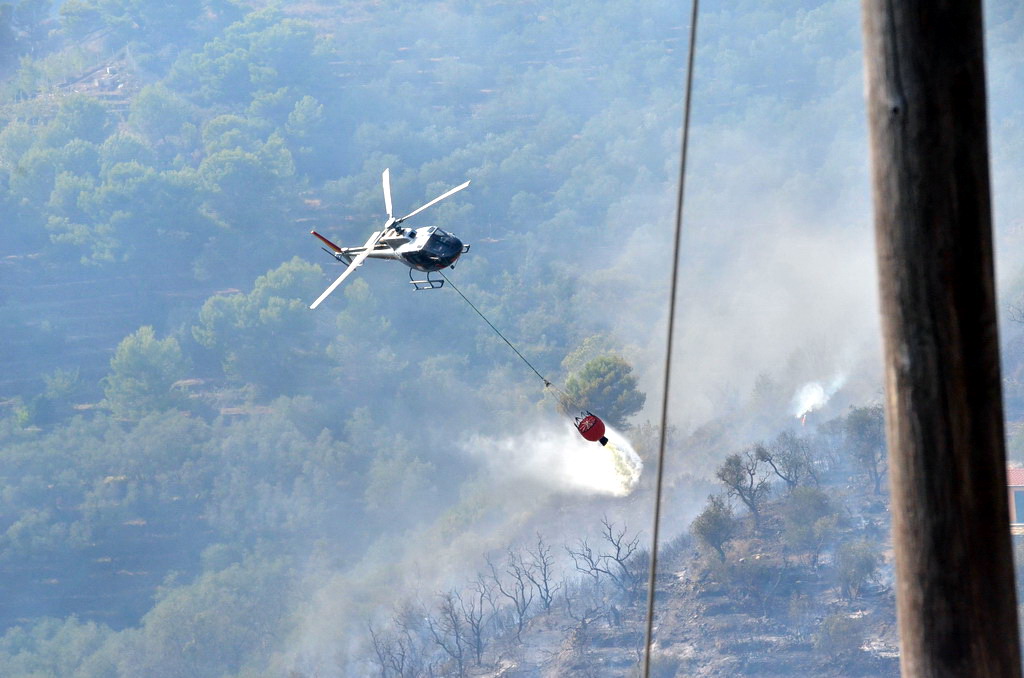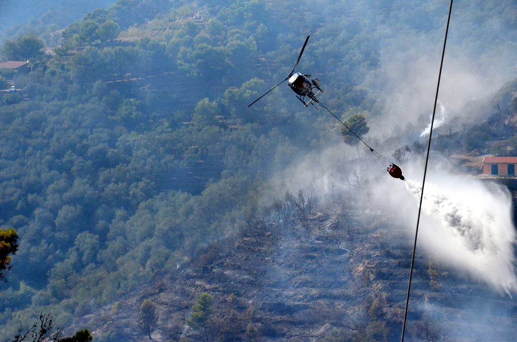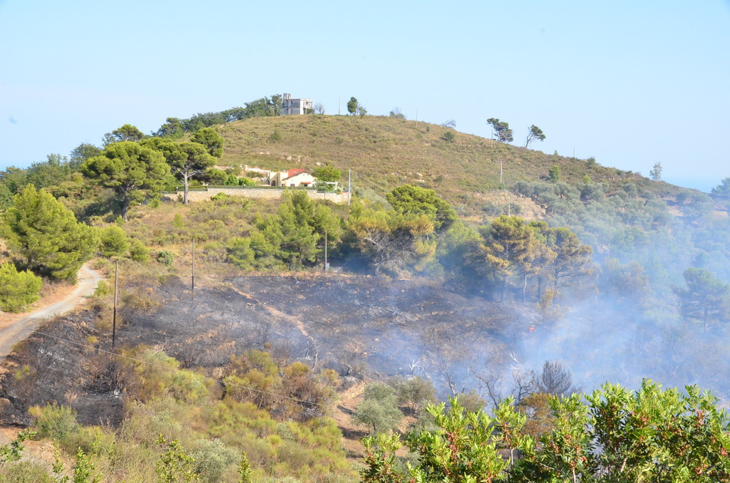 Civezza: vasto incendio vicino alle case in zona '5 burche', intervento degli elicotteri (FOTO e VIDEO)