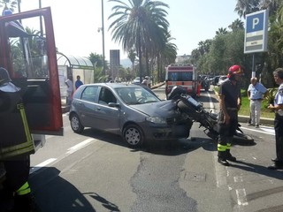 Sanremo: scontro tra una moto ed un'auto sul lungomare Calvino, centauro trasportato in ospedale (Foto)