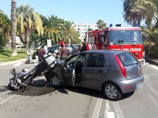 Incidente stradale la cui dinamica è ancora da ricostruire ad opera della Polizia Municipale, questo pomeriggio poco dopo le 14.30 sul lungomare Italo Calvino.