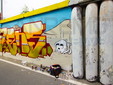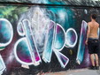 Per il primo appuntamento, oggi, un centinaio gli artisti sono stati impegnati per realizzare l’opera e abbellire circa 650 metri lineari di muraglione sull'argine destro del Prino. Le foto sono di Claudio Valente.