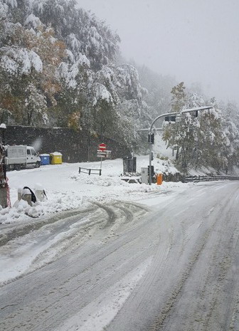 La neve da qualche ora ha iniziato ad imbiancare anche il fondo stradale, creando non pochi problemi agli automobilisti in transito. Quasi (se non tutte) le vetture risultano infatti essere sprovviste di gomme da neve, obbligatorie dal 15 novembre in poi.