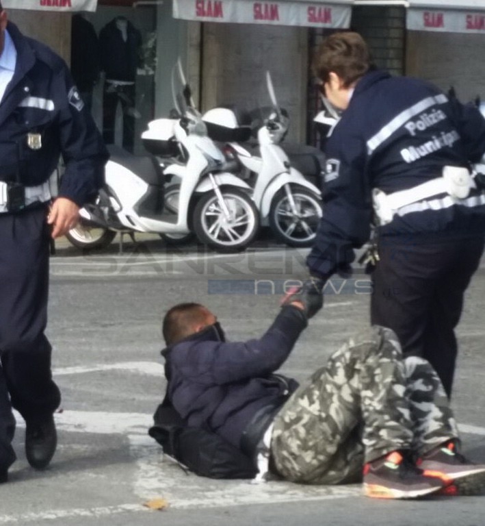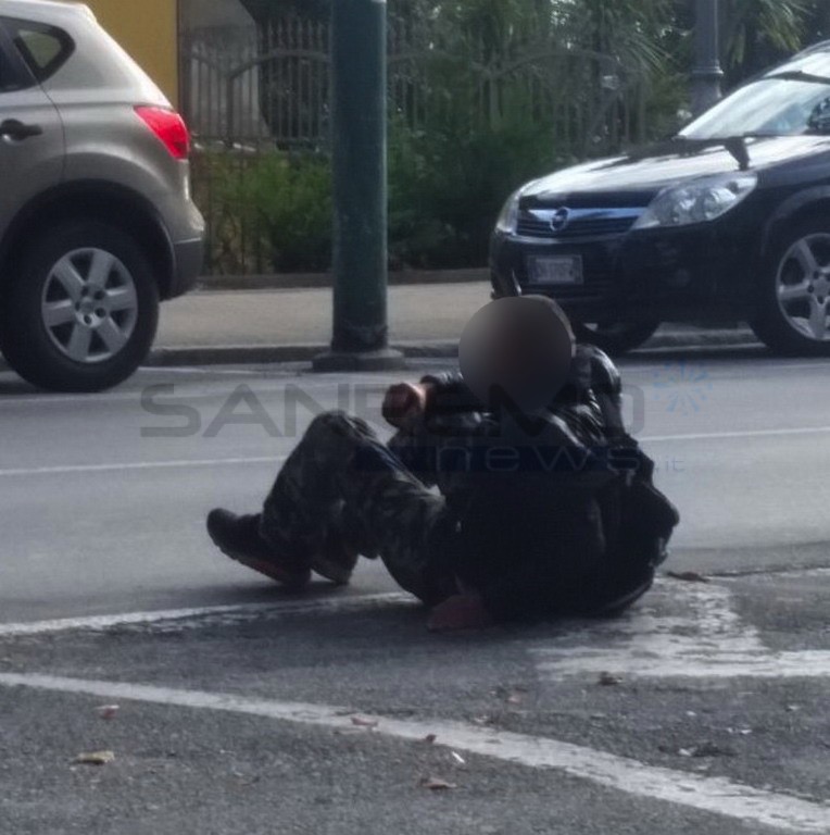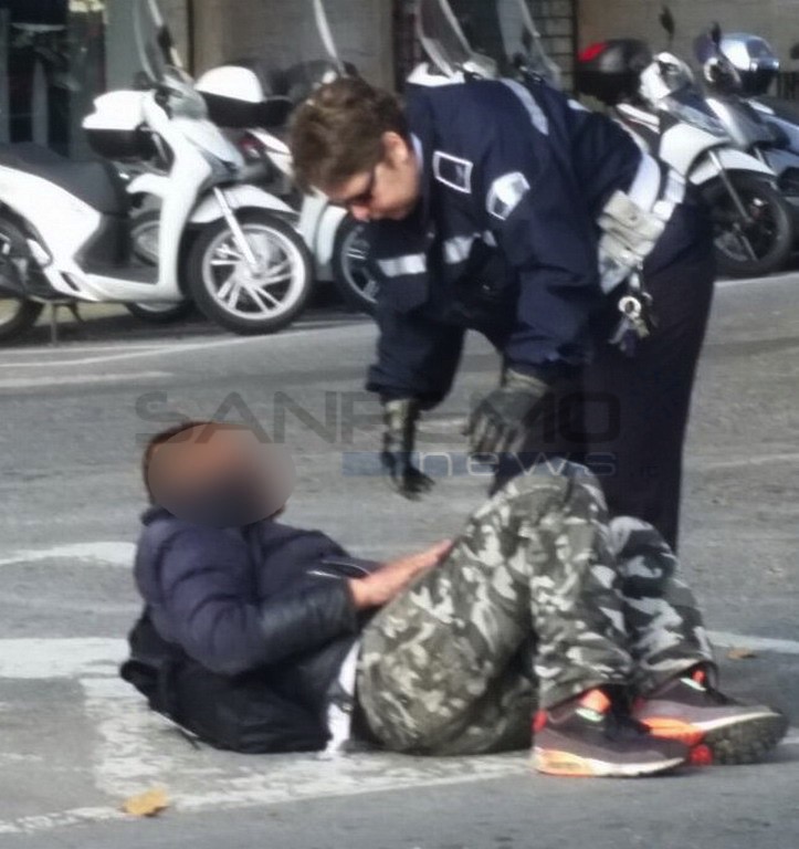 Sanremo: ubriaco si lascia cadere in mezzo alla strada in corso Orazio Raimondo, intervento di Polizia Municipale e Croce Rossa (foto)