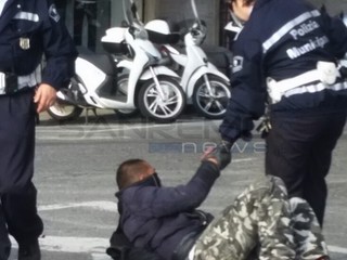 L'uomo ha prima barcollato per diversi metri per poi sedersi a terra rovinosamente sotto gli occhi stupiti degli automobilisti e dei passanti