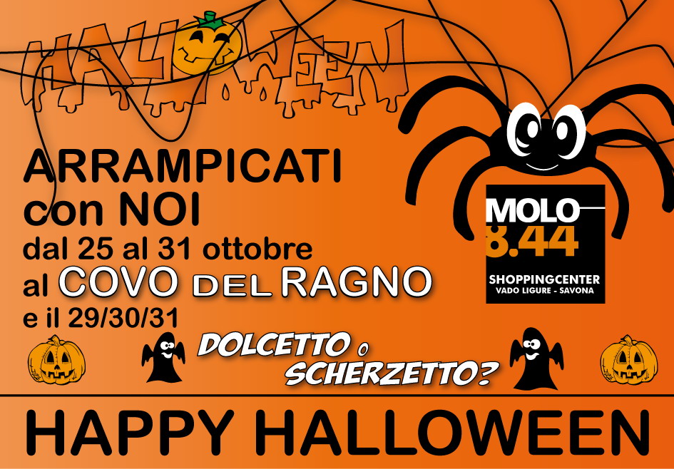 Allo shopping center Molo 8.44 a partire dal 25 fino al 31 ottobre i bambini potranno arrampicarsi nel Covo del ragno: tre pareti di arrampicata per tanto divertimento in piena sicurezza.
