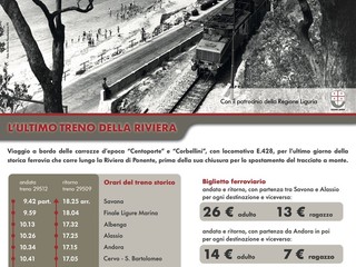 Un treno storico per salutare con meritato affetto la chiusura definitiva della tratta ferroviaria tra San Lorenzo al Mare ed Andora, programmata per il prossimo 1° novembre.