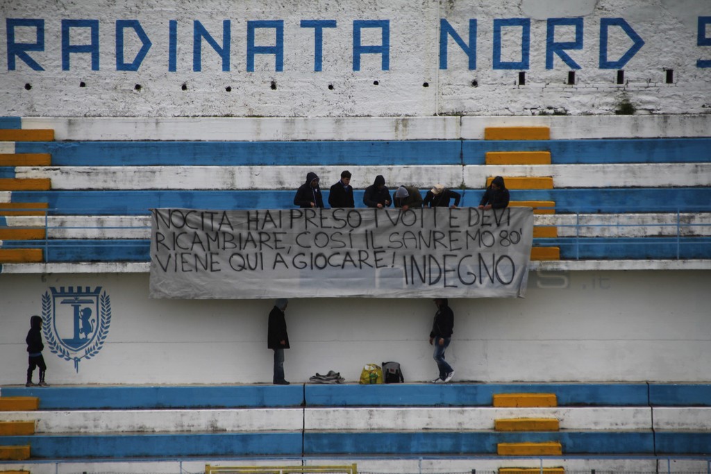 Domenica la contestazione dei tifosi per lo spauracchio della concessione del ‘Comunale’ al Sanremo ’80, società nata in estate e che milita nel campionato di Seconda Categoria. Dalla gradinata è comparso uno striscione, nel mirino dei supporters l’Assessore allo Sport Eugenio Nocita.