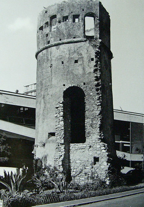 “Il monumento, denominato popolarmente «Torre saracena» e situato in piazza Eroi Sanremesi di fronte al moderno edificio del Mercato annonario, è stata l’unica costruzione della zona a non essere demolita quando, a partire dal 1934, vennero abbattute le mura e le vecchie case del Borgo, quartiere avanzato della Pigna verso l’ansa del torrente San Romolo.