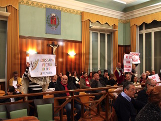 I residenti del borgo hanno presenziato questa sera alla riunione in programma a Palazzo Bellevue esponendo cartelli prima della seduta per sensibilizzare l'opinione pubblica sul futuro di quella che, a tutti gli affetti, è un'eccellenza del nostro territorio.