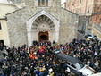 In oltre 400, tra amici, parenti ma praticamente tutta la comunità della città alta, per dare l’ultimo saluto ad Irene Albanese, la 19enne che sabato scorso si è gettata dalla finestra, dopo aver litigato con i genitori per futili motivi.