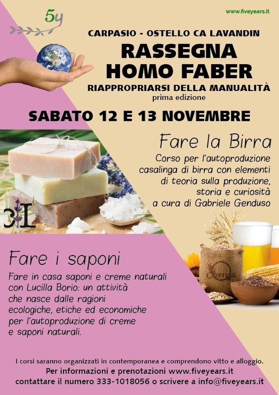 I giorni sabato 12 e domenica13 novembre si terranno presso l'ostello Cà Lavandìn di Carpasio i corsi pratico-teorici per la produzione artigianale di saponi e birra.