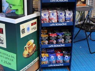 Le cialde esposte allo stand, sono compatibili con tutte principali macchine sono disponibili in 5 diverse miscele: Rossa, Blu, Verde (dek), Oro, Nera.
