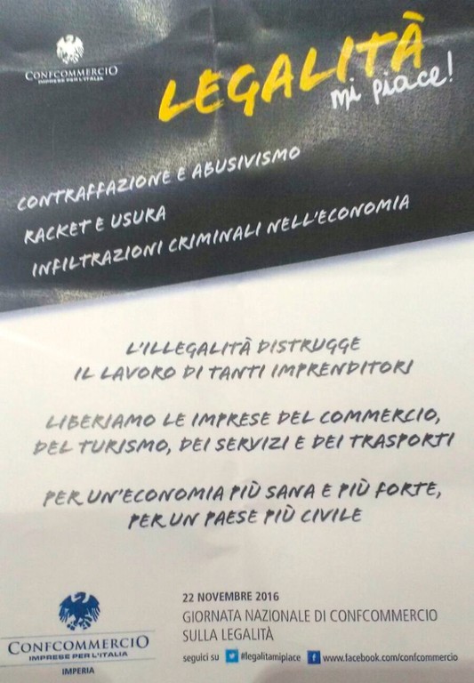 Ventimiglia: questa mattina in Comune la riunione per la giornata nazionale 'Legalità mi piace' organizzata da Confcommercio