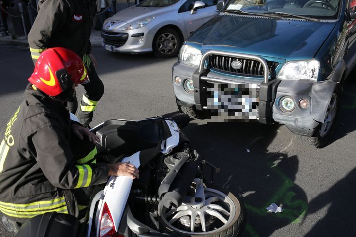Sanremo: incidente in centro, scooter rimane incastrato sotto un'auto. Donna portata in Ospedale