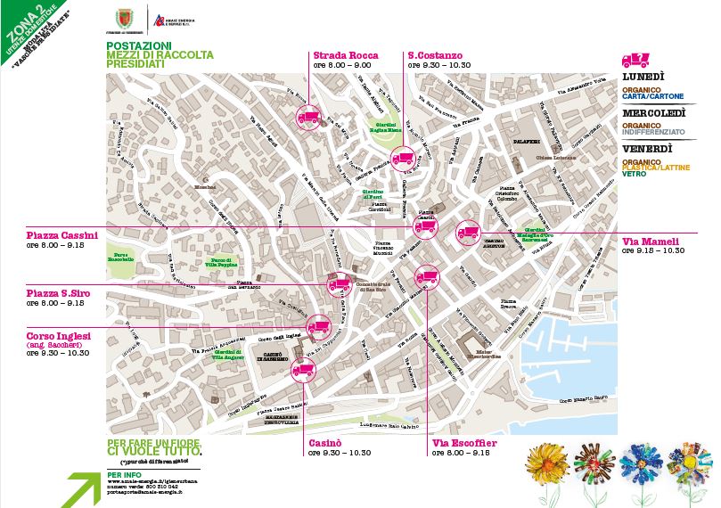 ZONE DI CONFERIMENTO DIRETTO ALLE VASCHE (via Matteotti e traverse fino a via Roma, Pigna, Città Vecchia lato Casinò-sotto c.so degli Inglesi).
