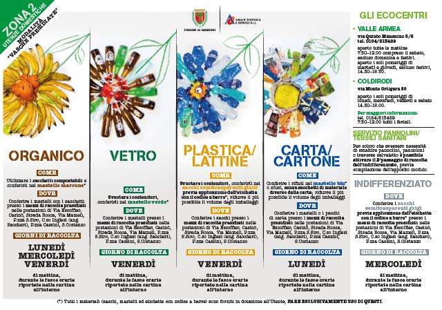 Si ricordano inoltre i calendari di raccolta per gli utenti domestici di Zona 2:
