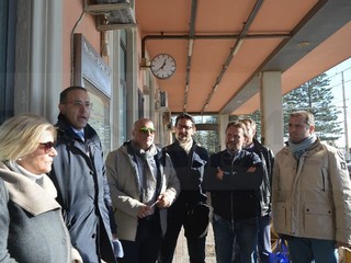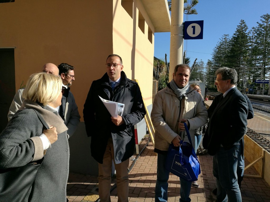 Sopralluogo questa mattina ai cantieri di Bordighera, in stazione e sul ponte ferroviario di Rio Borghetto. Presenti il sindaco della città delle palme, Giacomo Pallanca, ma anche l'Assessore ai Trasporti della Regione Liguria, Giovanni Berrino, il Direttore Produzione di Rete Ferroviaria Italiana, Marco Torassa e la senatrice della repubblica Donatella Albano. Nel corso dell'incontro sono stati illustrati tutti gli interventi in corso e previsti nella tratta Albenga-Ventimiglia fino al 10 dicembre.
