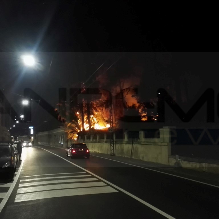 Ospedaletti: a fuoco due palme nella notte in via Giulio Cesare, doppio intervento dei Vigili del Fuoco (Foto)