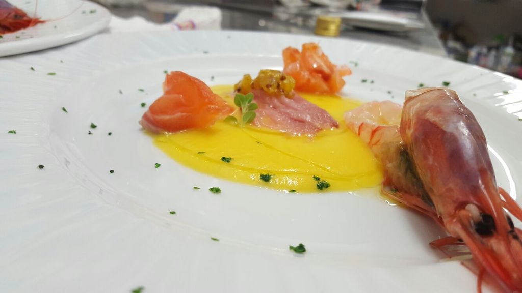 Gnocchetti saltati alla bottarga di tonno, crema allo zafferano e basilico