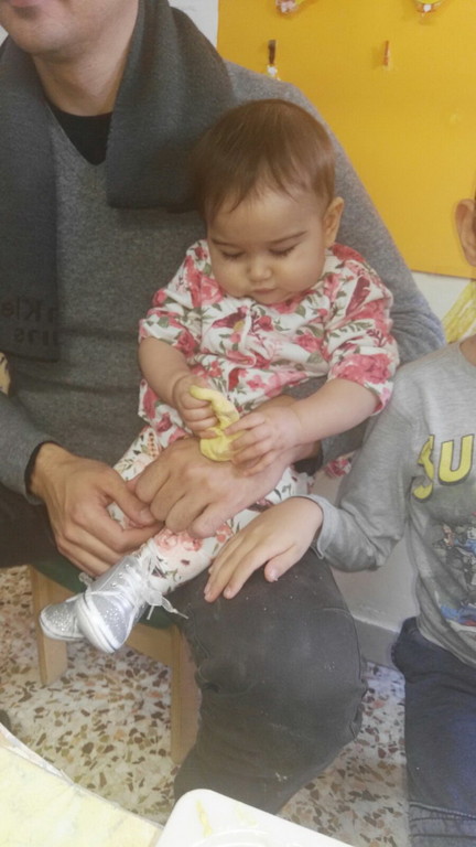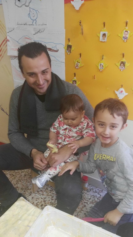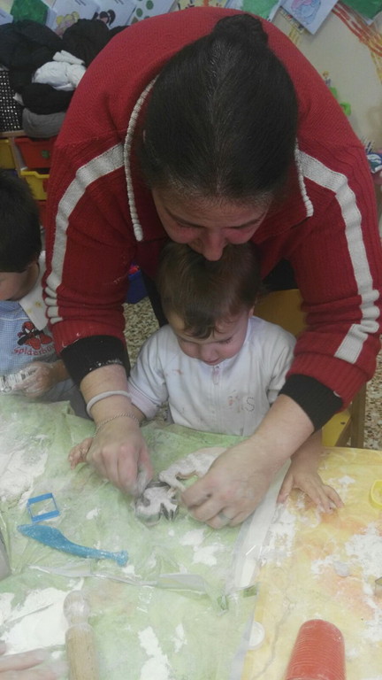I piccoli del servizio educativo domiciliare, con mamme, papà ed educatrici hanno voluto condividere con gli amici più grandi e le loro insegnanti, il laboratorio di Natale, che prevedeva la realizzazioni di decorazioni per l'albero, fatte con la pasta di sale di tanti colori. Ed ecco, in mezzo alla farina, ai grembiuli ed ai nasini diventati tutti bianchi, ai sorrisi, alle mani grandi e piccole tutte impastate e appiccicose, spuntare alberelli, stelline, cuori, angioletti e renne che poi addobberanno le case, soprattutto col bel ricordo!".
