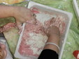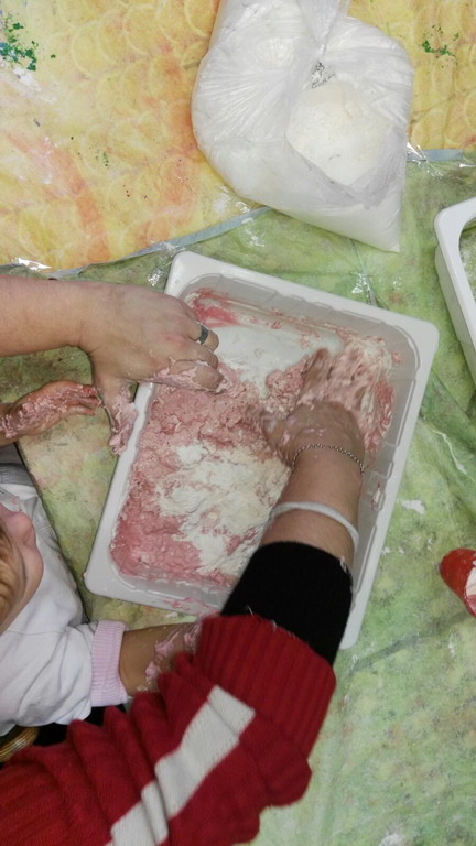 Una lunga tavolata ricoperta di tovaglie nella sezione del plesso scolastico di via Margotti, ha accolto il vivace gruppetto di creativi; e poi: vaschette, farina, sale, acqua e coloranti naturali. Ecco gli ingredienti che hanno confezionato la mattinata, volta alla conoscenza reciproca delle due scuole "amiche" ed all'offerta di un percorso di continuità per i piccoli che si apprestano ad affrontare il passaggio da un ambiente educativo all'altro.