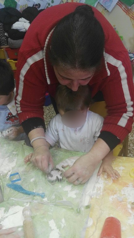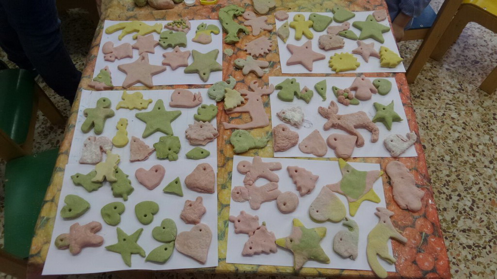 I piccoli del servizio educativo domiciare, con mamme, papà ed educatrici hanno voluto condividere con gli amici più grandi e le loro insegnanti, il laboratorio di Natale, che prevedeva la realizzazioni di decorazioni per l'albero, fatte con la pasta di sale di tanti colori. Ed ecco, in mezzo alla farina, ai grembiuli ed ai nasini diventati tutti bianchi, ai sorrisi, alle mani grandi e piccole tutte impastate e appiccicose, spuntare alberelli, stelline, cuori, angioletti e renne che poi addobberanno le case, soprattutto col bel ricordo!