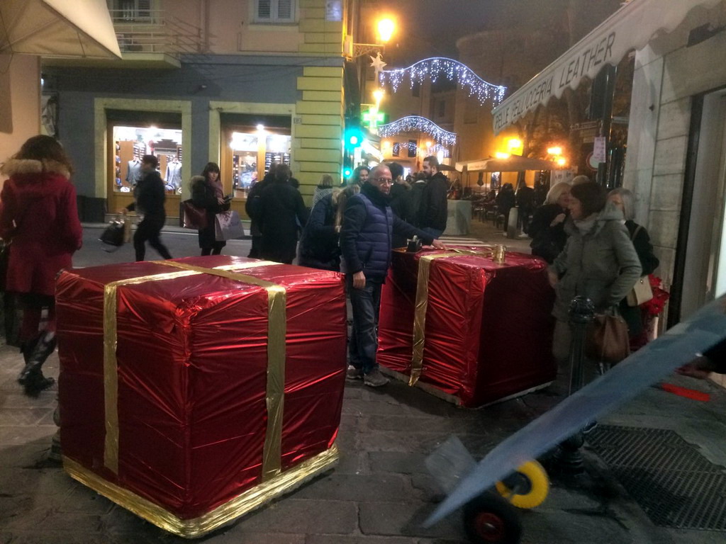 Intanto qualcuno si sta organizzando per trasformare i cubi di cemento in pacchetti giganti. Il primo a farlo il titolare di 'Project Moda', Francesco Esposito con le sue collaboratrici.