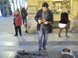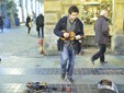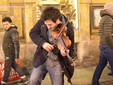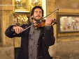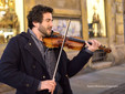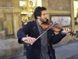 Le note del suo violino risuonano tra i tanti turisti che ancora passeggiano in centro, o accompagnano il viaggio a piedi verso il lavoro o verso casa.