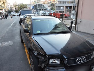 Incidente stradale ancora da ricostruire ad opera della Polizia Municipale di Sanremo, questo pomeriggio poco prima delle 15.30, all’inizio di via Martiri della Libertà.