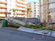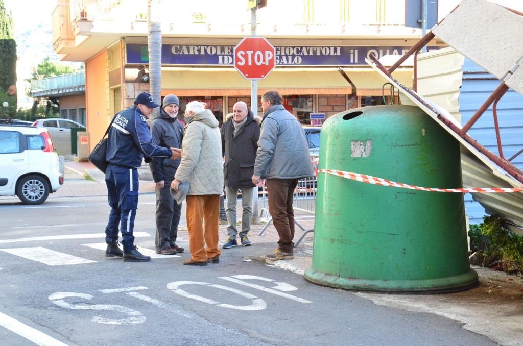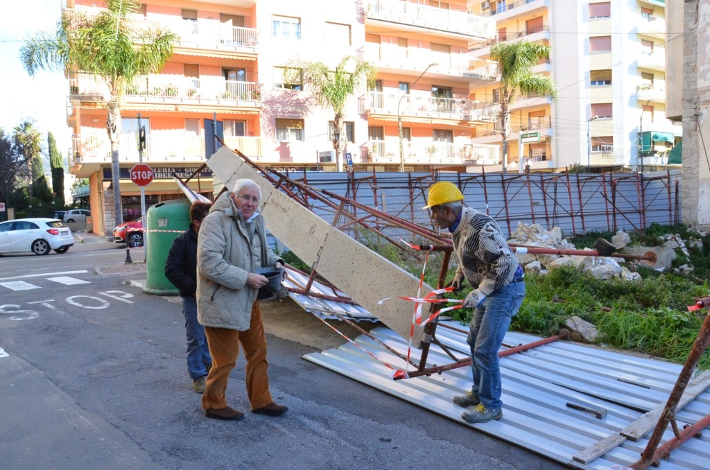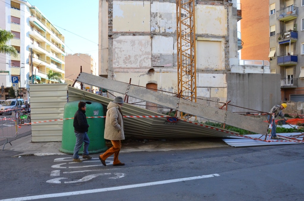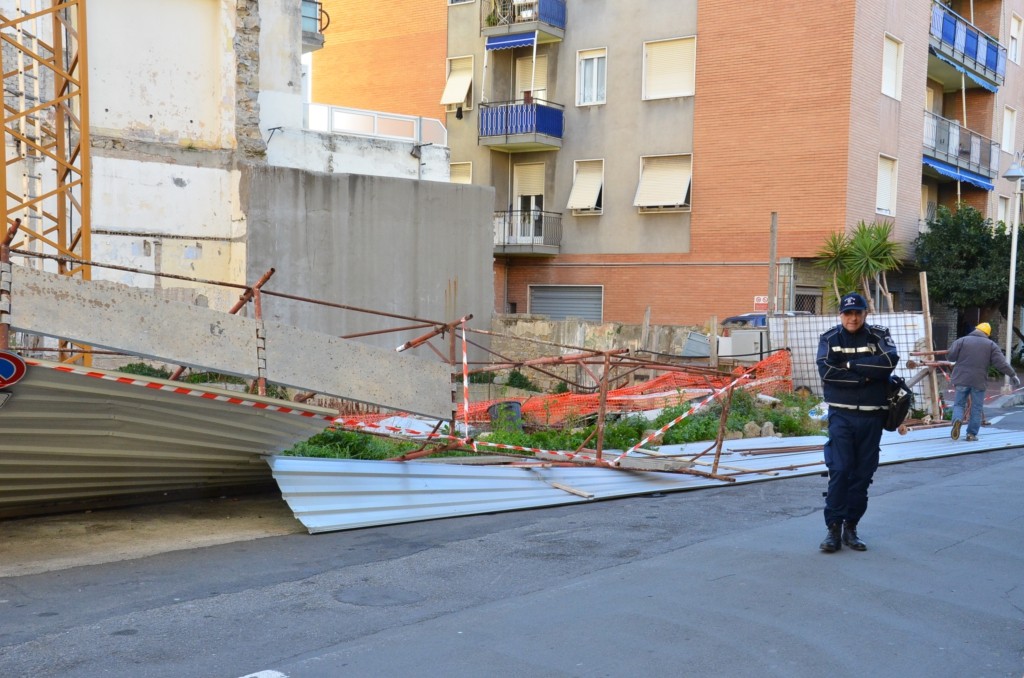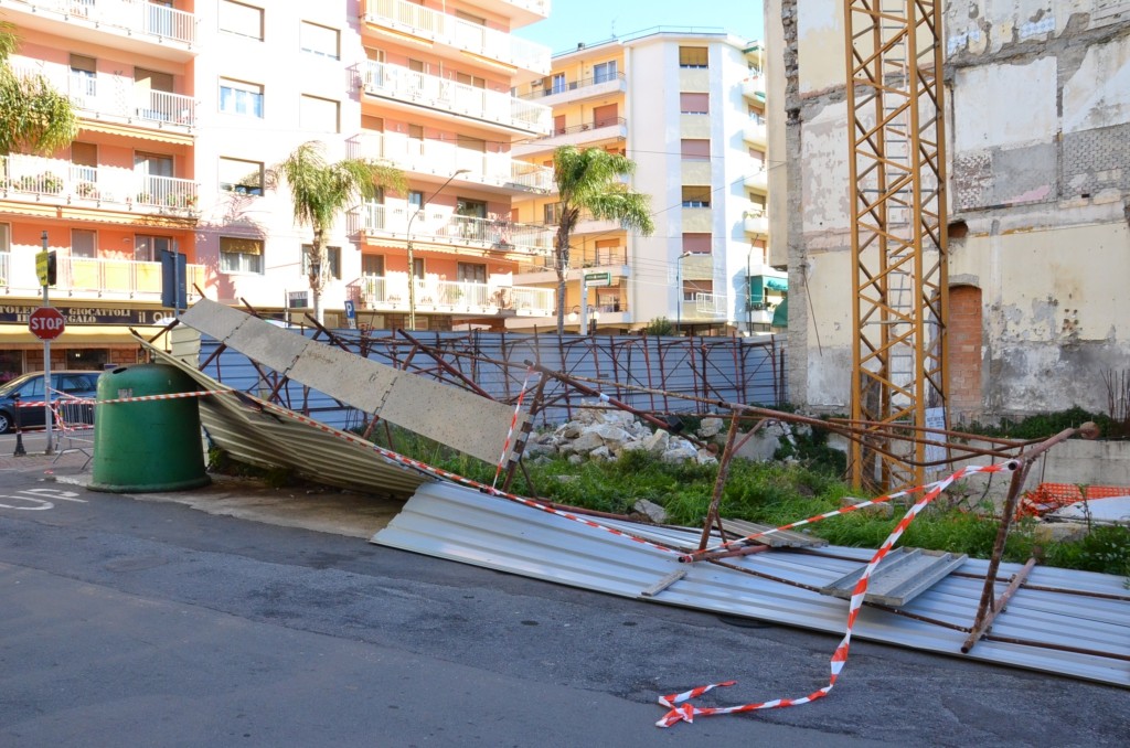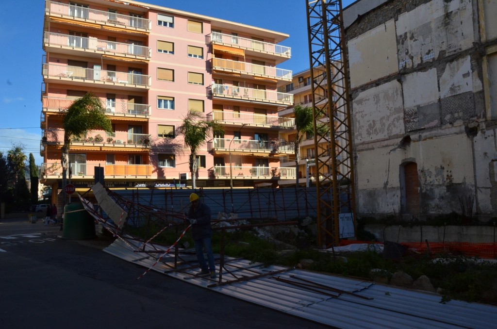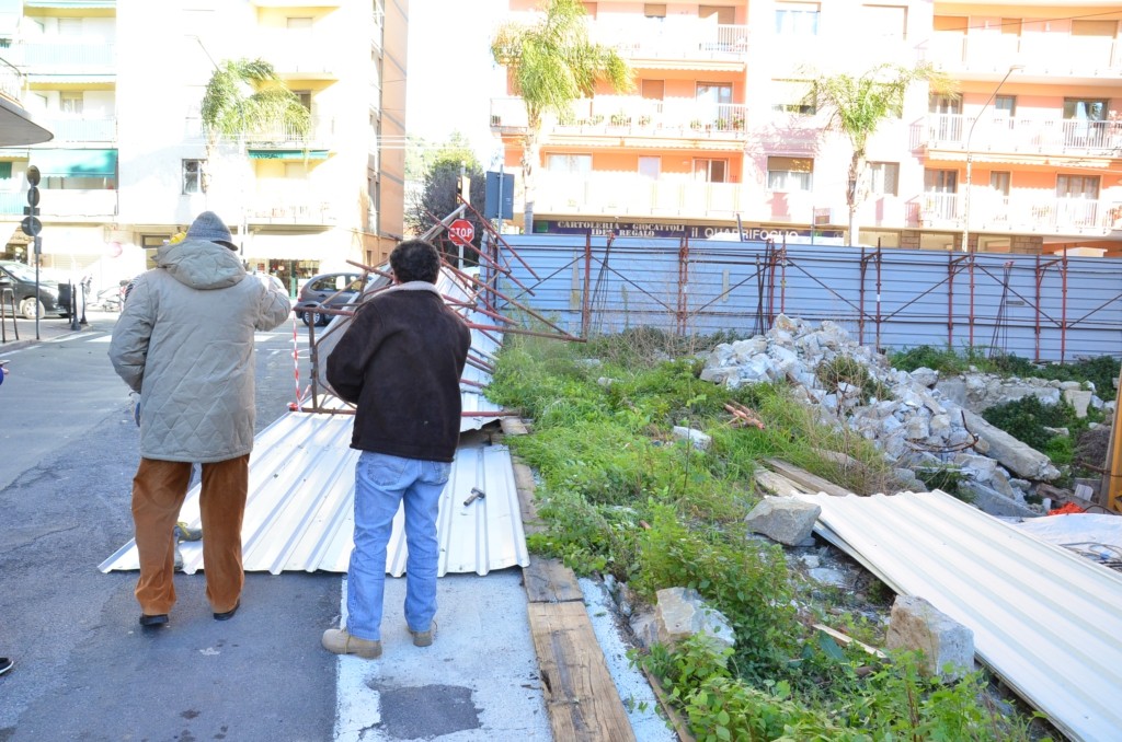 Vallecrosia: impalcatura di un cantiere si accascia sulla strada, nessuna persona ferita (Foto e Video)