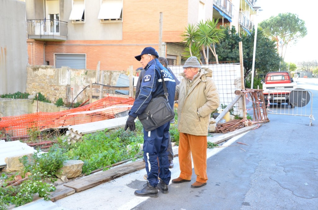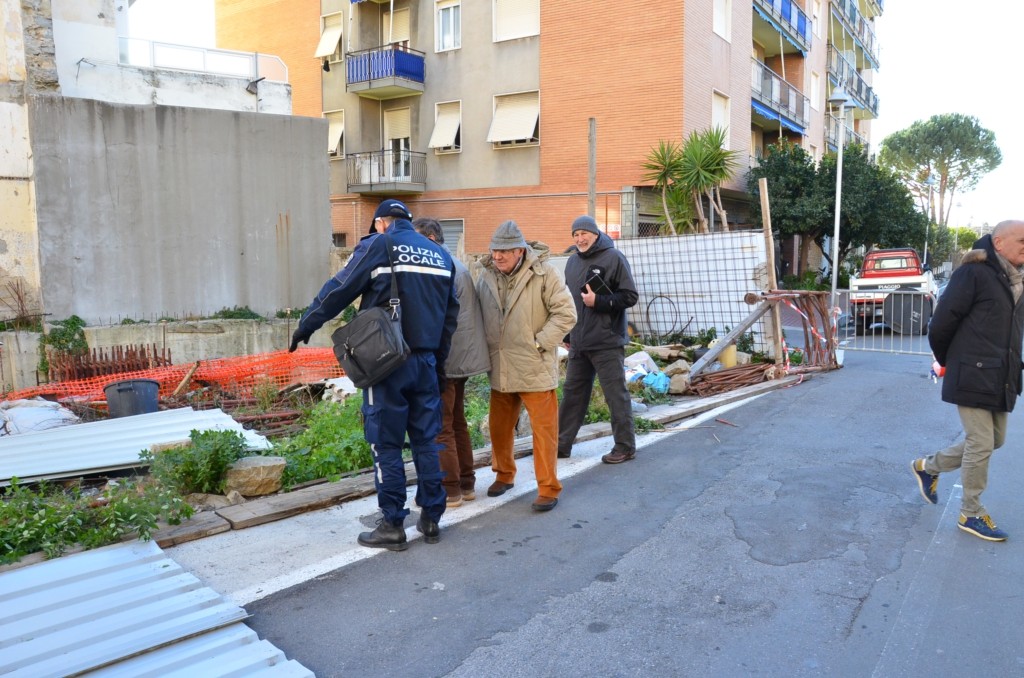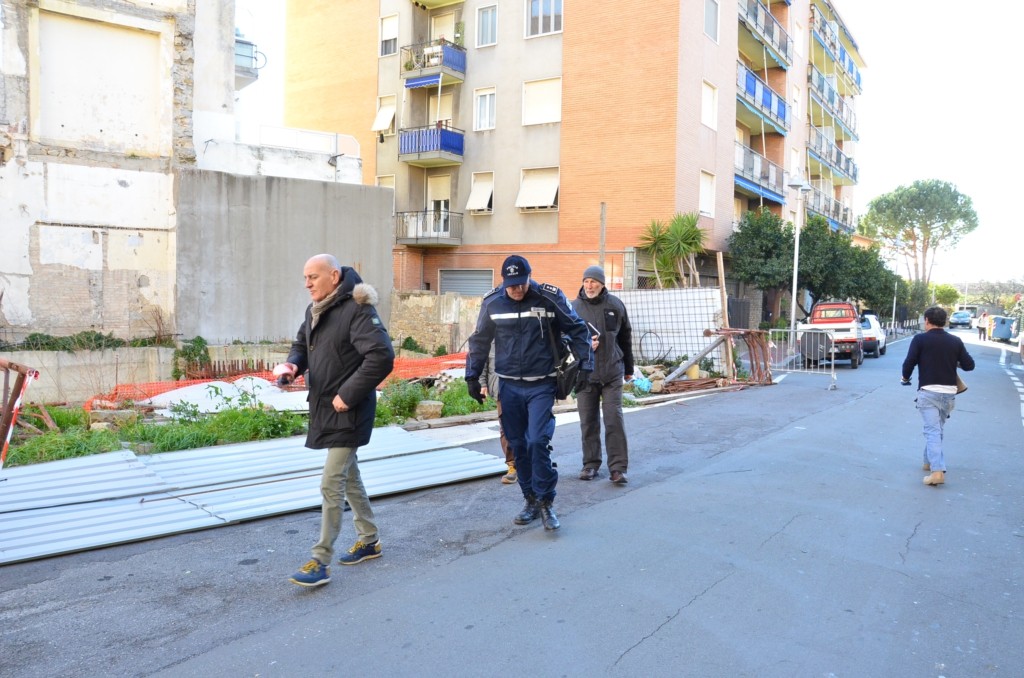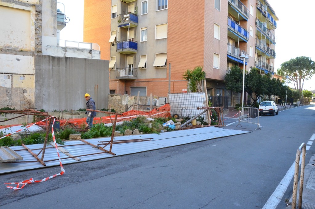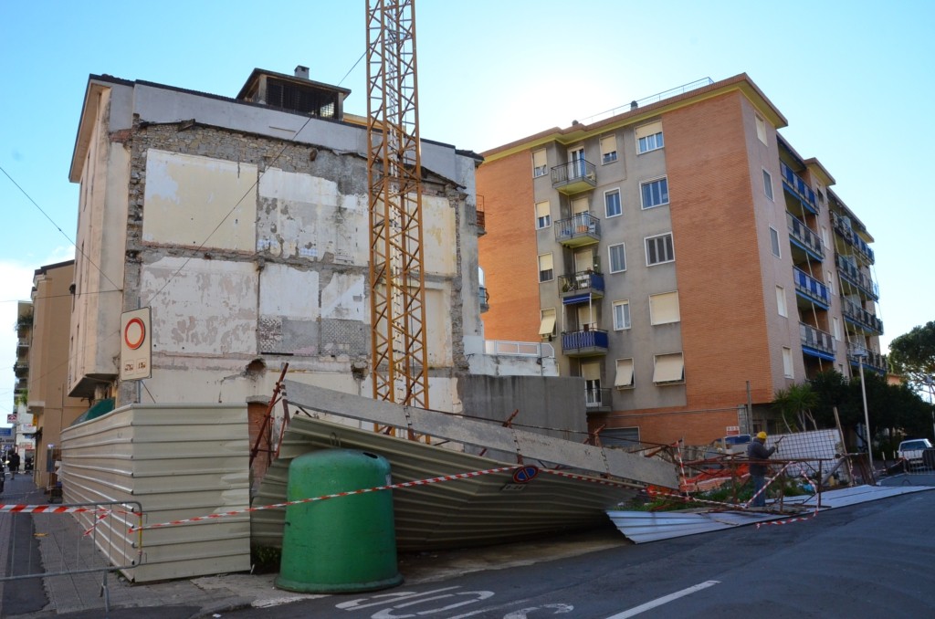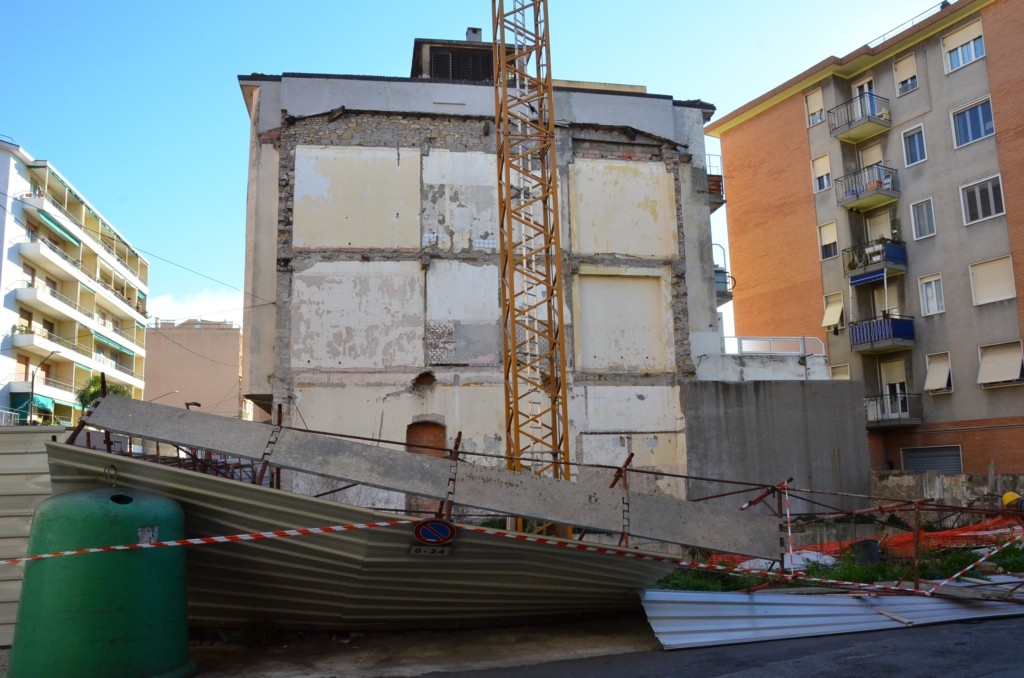 Il crollo si è verificato intorno alle ore 9.30 nel cantiere dove una volta sorgeva un ex albergo acquisito dal gruppo Parodi. Sul posto il geometra Piergiorgio Parodi per un sopralluogo.