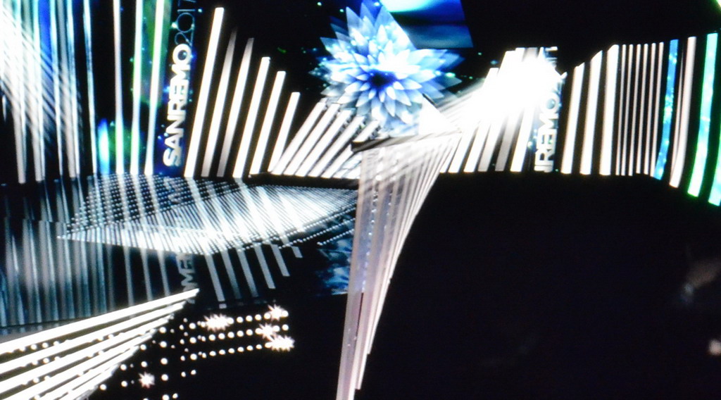 Un semplicissimo pop up realizzato con un cartoncino ed una fustella. Da questo oggetto nasce l'idea per la nuova scena di Sanremo 2017: una linea continua, un segno progettuale che vuole trasformare il teatro Ariston in una suggestiva Music-Hall, un segno planimetrico che dia un continuum progettuale tra palco e platea. L'idea è quella di rappresentare lo spazio scenico come un grande pop up, visto da angolazioni diverse, che si trasforma in un gioco progettuale del tutto originale dove la scenografia si unisce alla grafica e alla tecnologia.