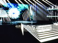 Lo spazio scenico del palco si apre: da una parte abbracciando il pubblico del teatro, dall'altro avvolgendo gli artisti che si esibiranno sul palco facendoli sentire al centro di uno spazio fisico che li circonda. E fondamentale, come sempre, il supporto della tecnologia che diventa essa stessa elemento scenografico.