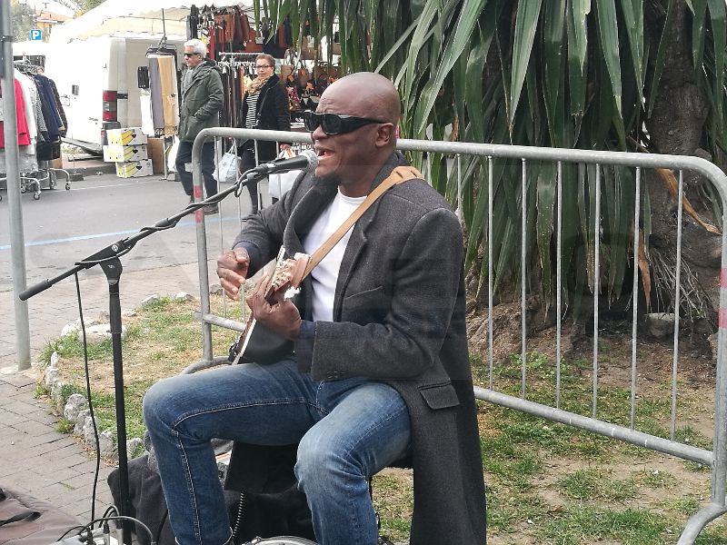E' un suono travolgente quello che proviene dalla chitarra e dalla voce di Aaron Lordson e questa volta ha incuriosito passanti e turisti fra le bancarelle del mercato del venerdì a Ventimiglia. Non è la prima volta che il musicista si esibisce in città, nei mesi scorsi è capitato di vederlo con la sua chitarra a presentare i suoi brani, perché, si sa, il modo più efficace per farsi conoscere è proprio la strada.