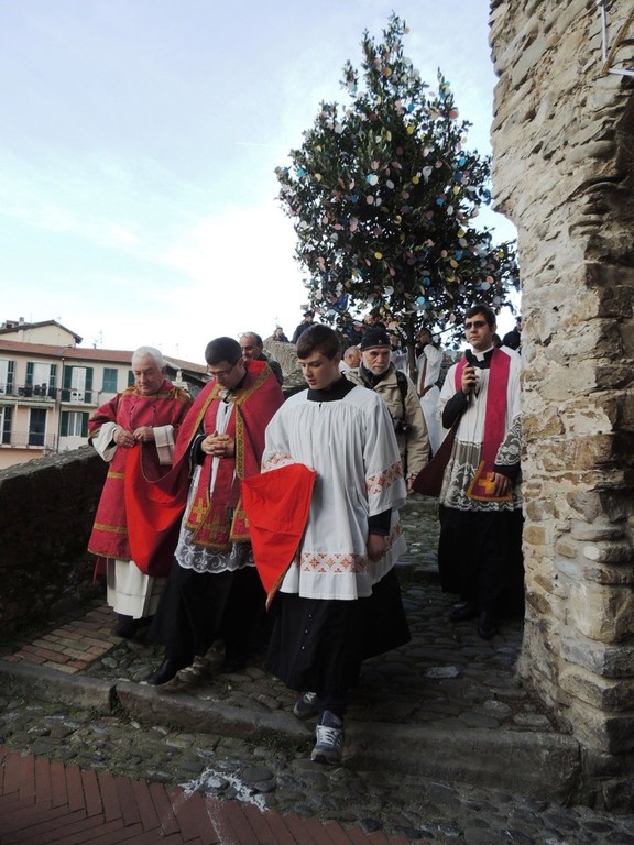 Al termine della processione, allietata dalle musiche della Banda Cittadina, le fronde dell’albero saranno recise e offerte ai presenti che le conserveranno in segno augurale. La manifestazione sarà preceduta al mattino, alle ore 11.15, dalla S.Messa celebrata da don Gianluigi Peirano insieme al parroco Don Alessio. Alla processione parteciperanno numerose Confraternite provenienti dalla Francia, da Monaco, dal Piemonte e dalla Liguria alcune recanti anche gli enormi crocifissi.