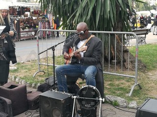 E' un suono travolgente quello che proviene dalla chitarra e dalla voce di Aaron Lordson e questa volta ha incuriosito passanti e turisti fra le bancarelle del mercato del venerdì a Ventimiglia. Non è la prima volta che il musicista si esibisce in città, nei mesi scorsi è capitato di vederlo con la sua chitarra a presentare i suoi brani, perché, si sa, il modo più efficace per farsi conoscere è proprio la strada.