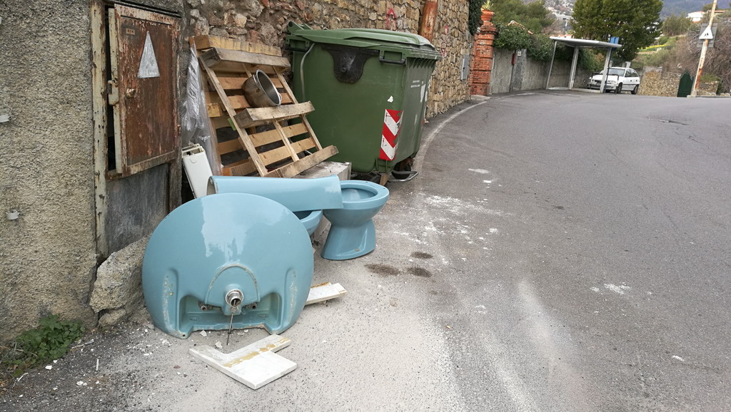 Sanremo: rimosso il primo cassonetto da zona Borgo, ma i maleducati lasciano un intero bagno! (Foto)
