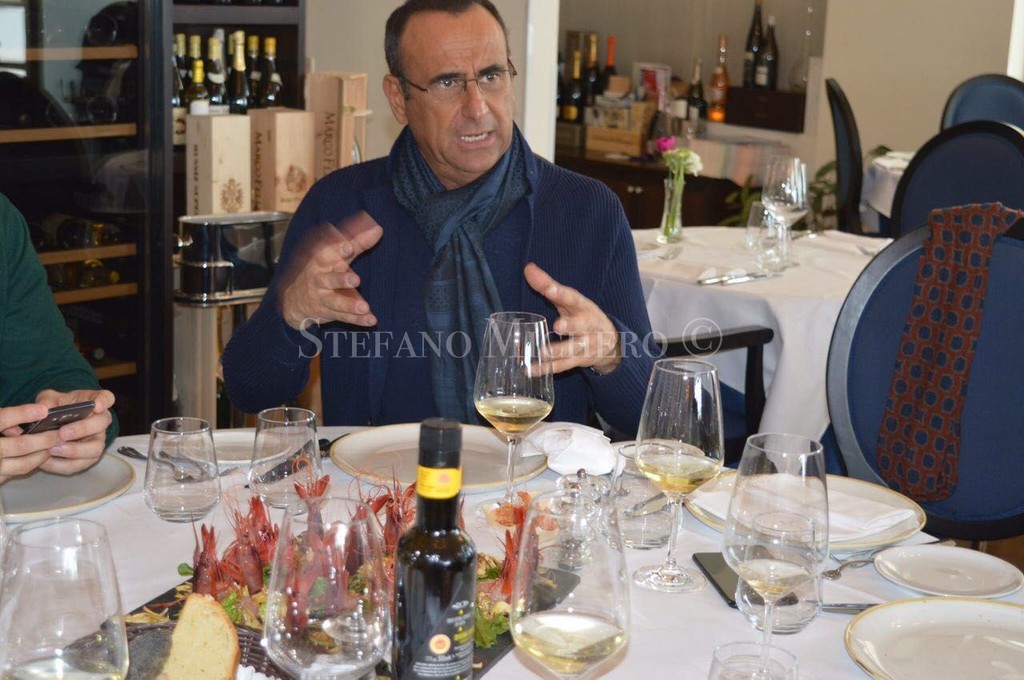Il presentatore del Festival è stato accompagnato in un viaggio a km 0 preparato dallo chef del locale Manuel Marchetta. Ad attendere il toscano c’erano tante prelibatezze ma anche i pescatori della zona, il sindaco Alberto Biancheri ed il comandante della capitaneria di porto matuziana Vincenzo Fronte.