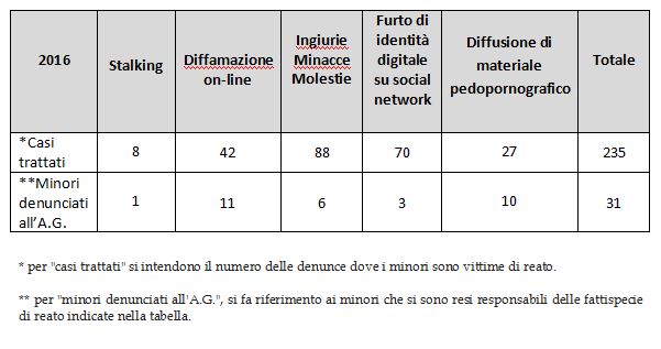 E proprio successivamente a questi incontri è stato riscontrato un aumento consistente delle denunce di minori nei confronti di coetanei per episodi di bullismo e cyberbullismo".