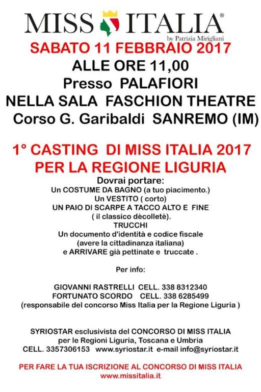Appuntamento domani 'Fashion Theatre' del Palafiori di Sanremo, alle 11, all'interno di Casa Sanremo, per il primo casting ufficiale e, a seguire, la selezione regionale.