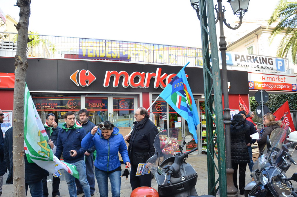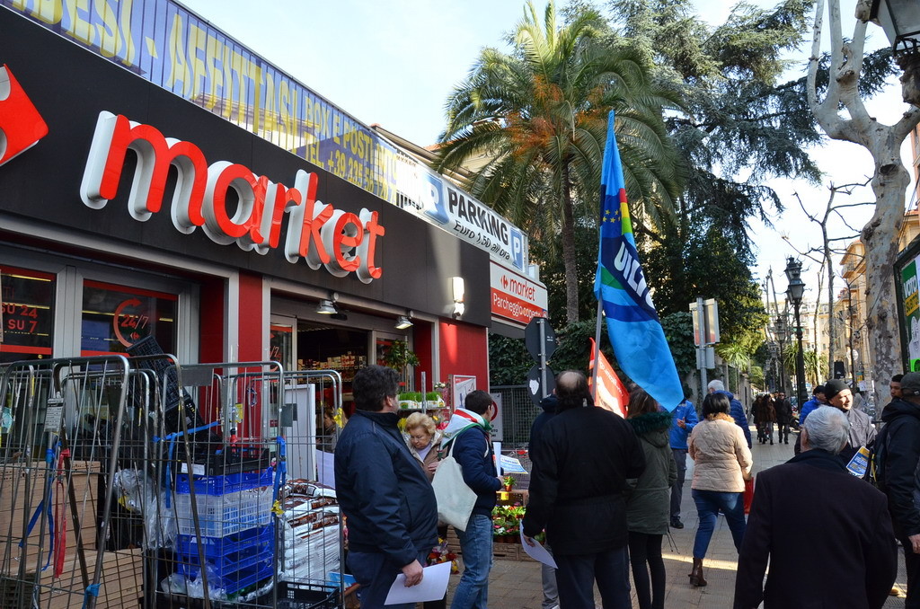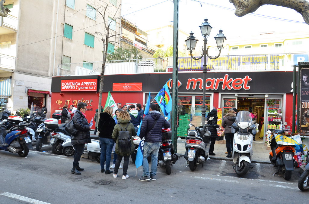 Alla manifestazione erano presenti tutti i sindacati in forma unitaria (Filcams, Fisascat e UilTucs). La protesta è riferita alla politica dell’apertura 24 ore su 24 con contratti atipici e con la richiesta di esubero per 500 dipendenti: “Le fasce orarie ed il monte ore necessari per le aperture – ha detto Massimiliano Scialanca – confermano che questi esuberi non esistono proprio. Per questo chiediamo di sederci attorno ad un tavolo per discutere di questi provvedimenti”.